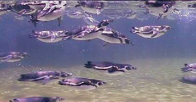 イワトビペンギン 右は、潜るフンボルト。イワトビは遠くて写せな |