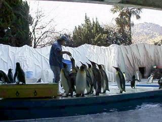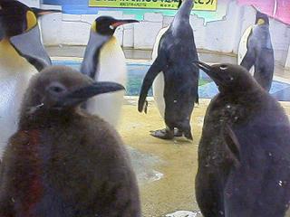 いささか落胆気味にペンギンランドに向かう。しかし、そこで状況は一変する。まず我々を出迎えたのはガラス越しに、30cm程度の距離にならんだ十数羽のオウサマペンギン。でけえ!オウサマペンギンの実物を見るのは初めてである。コウテイペンギンよりふたまわり小さいと言うが、十分「Oh!