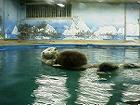 開館9時を10分程まわった頃にバスをおりる。なんだかうらぶれた雰囲気が漂う。祝日なのに人影もほとんどない。まさか定休日か?おびえながら入場口にむかうと人がいた。ほっと一安心。入場料2名で2,200円を支払うと入場門をくぐる。・・・・誰もいない。とりあえず、ラッコの水槽にむかう。なんとラッコの子供がいる!むちゃかわいい。しづはきゃあきゃあ言っている。一通り、一順することにして本館に向かう。魚の種類は多い方ではないが一応充実している。しかし、残念ながら水槽や内装がとても古く、センスもあまり良いとは言えない。数年前に訪れたおしゃれな水族館ブームの恩恵にもあずかれなかったことがうかがい知れる。もっとも、これは一般論。私は水族館マニアでなく水生物大好き人間なので十分堪能した。どこにも張り付いていないコバンザメやウツボの大群、巨大ナマズに触れる磯の動物コーナー。決して素材は悪くないのだが、やはり見せ方がマズすぎる。正直言って閉鎖がきまったのも納得がいってしまう。