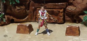 | 前座: 真打ち動物のショーを待って席取りしているお客様のために、必ず人間が「前座」を勤めます。このおねーさんは、アシカのショーの前座でコントしてました。イルカではおっさんのギター弾き語り、シャチではおっさんがシャチクイズとか。ですから、席取りのために早く来ても退屈しないのは良かった。そしてあくまで主役は動物。 |