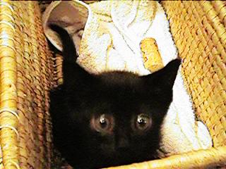 「わしのごみぶくろになにすんねん」 キメてますが、鼻の頭黒いですね。 「ほっとけっ!」 |