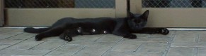 | 夏のにゃんこはだれまくり。 夏毛になってほっそりするかわりに、のびるのびる。 びよーん 特に黒猫はよくのびる。 なんでだろう?チョコのように溶けて流れそう。 |