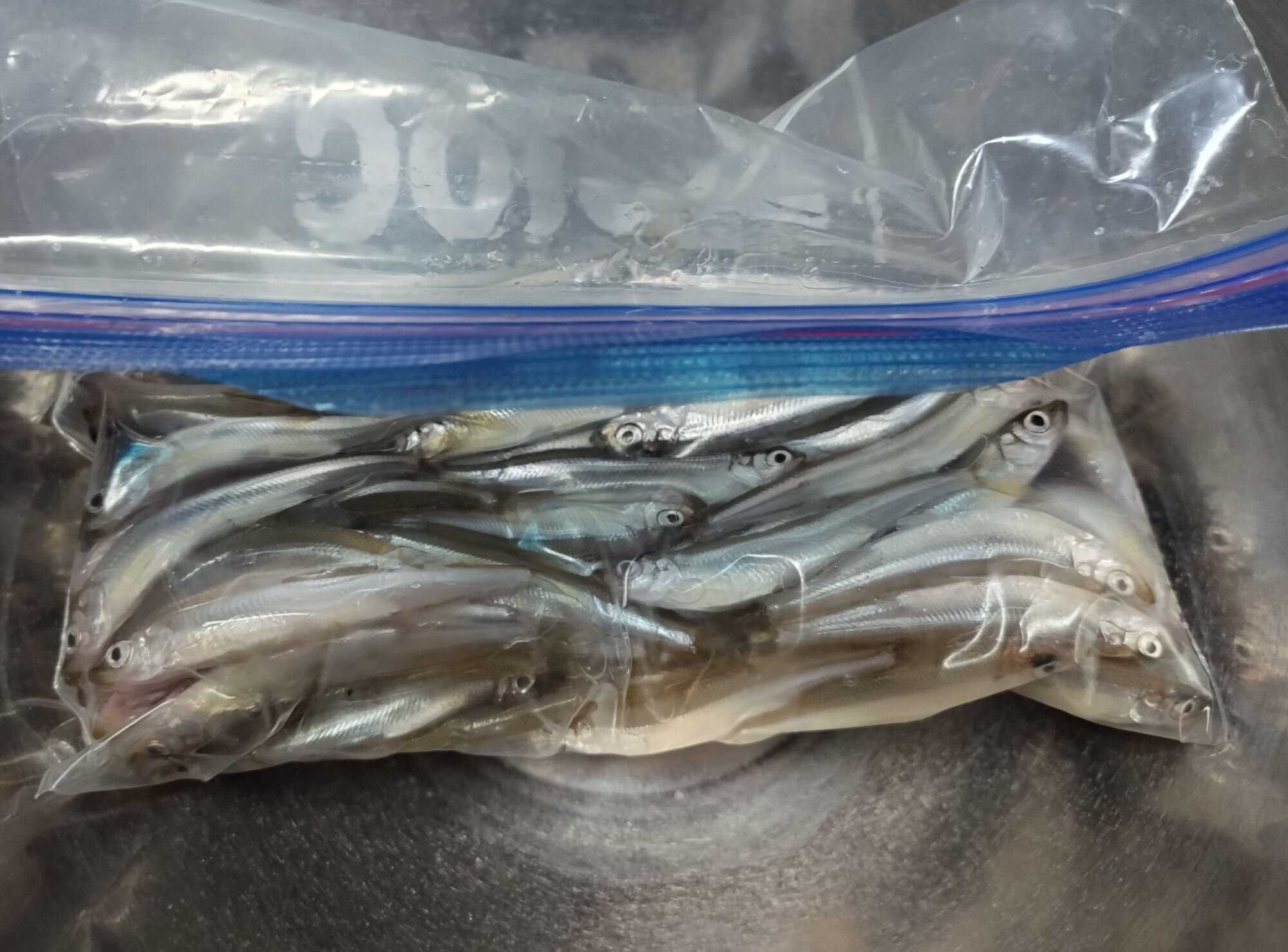 生かしクーラーからジップロックのMに数えながら移したらまさかの100尾ちょうどだった(誤差あるかも)。満足。