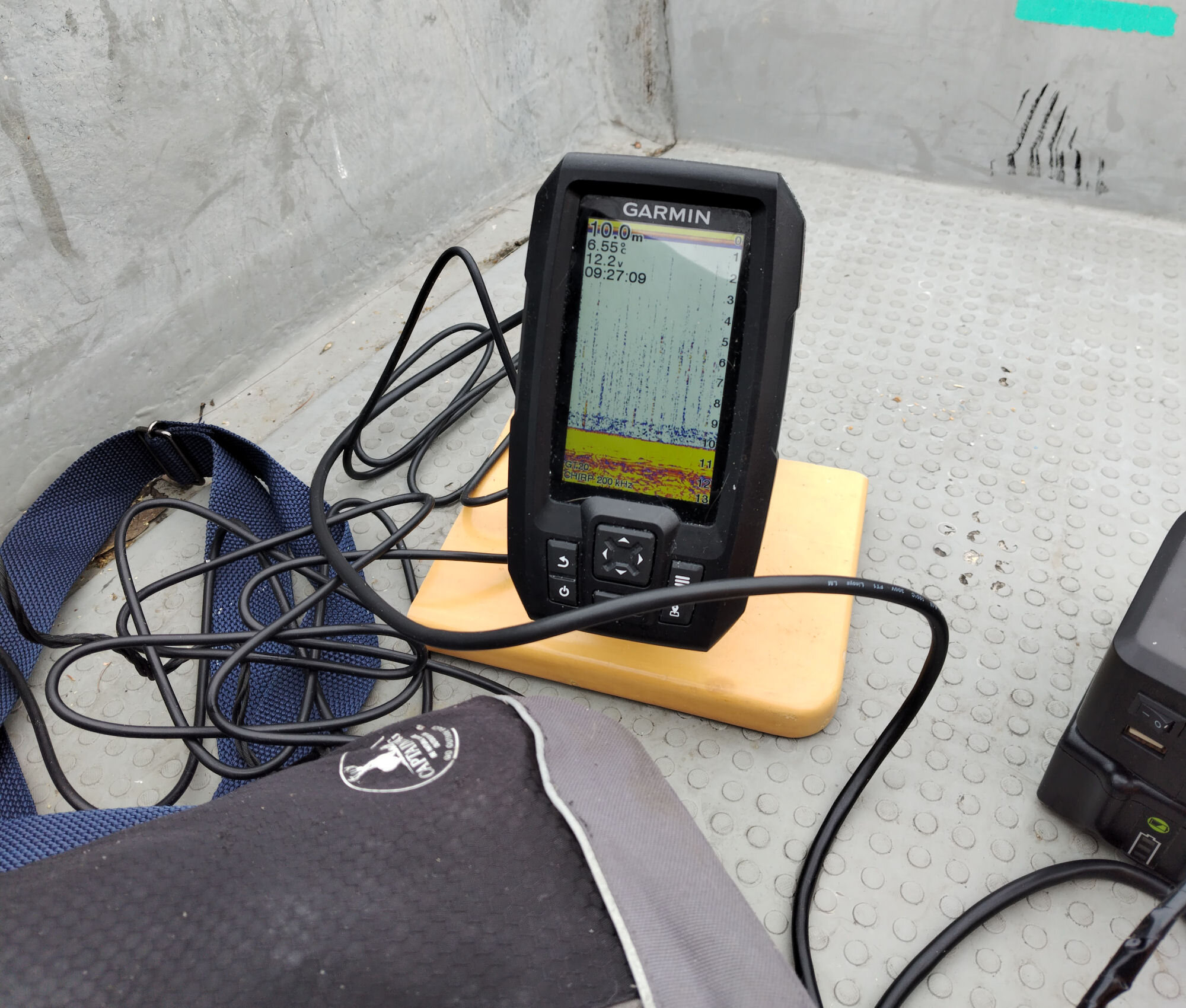 渋かったので今回は魚探くんも起動してみた。なんとなくちょっと上で動きがあったときにその深さに持ってたら釣れたりしたので結構効果あるのかとも思ったのだが、動きがあってもまったく釣れない時もあり、さらに隣で高そうな魚探を使ってた人が「今日は底べったりなのか魚探に全く映らん」とぼやいてたので自分が見てたのは魚影ではないのかもしれない。ちょっと勉強しないと。