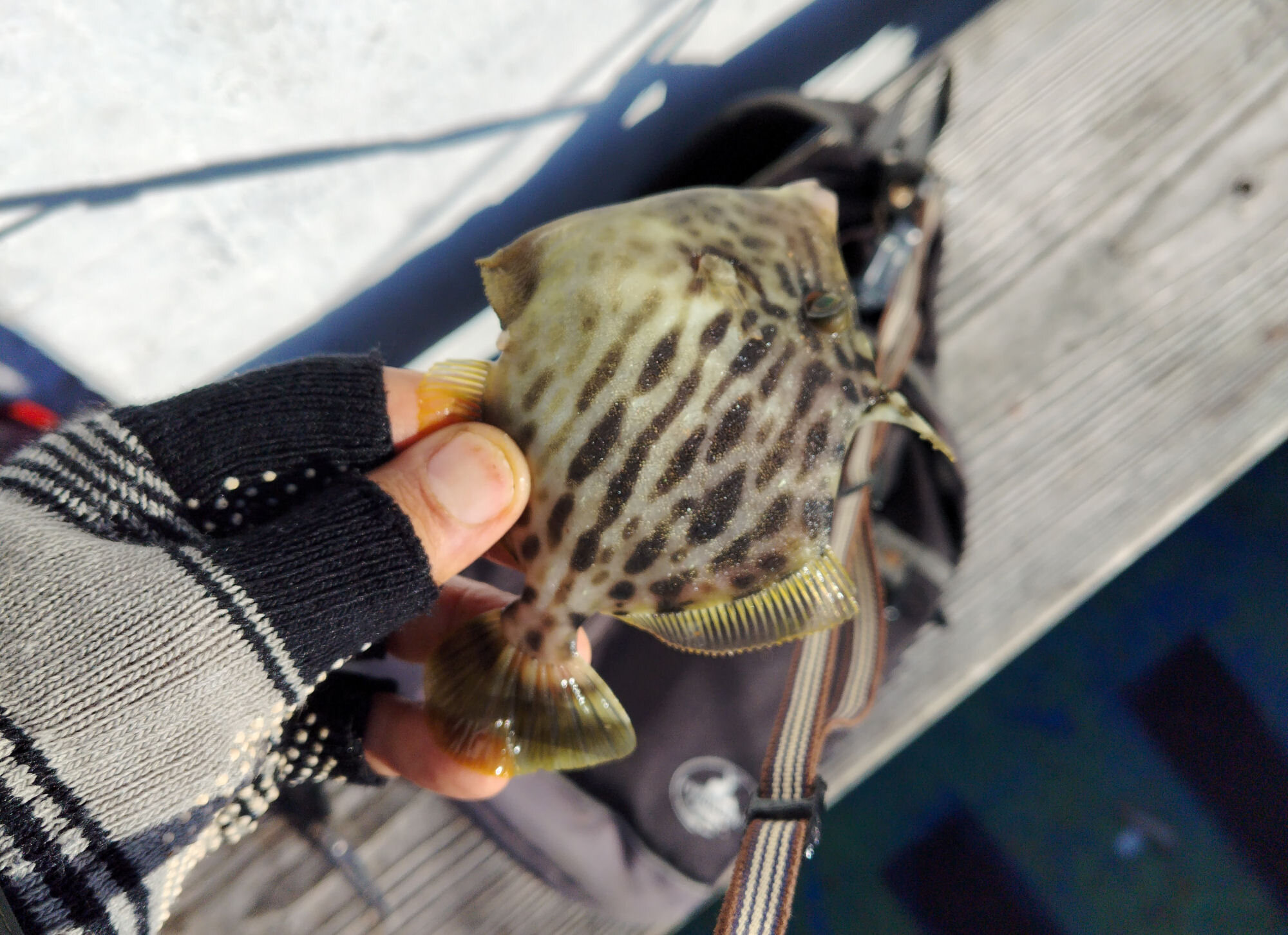 鯖だけ5時半起床。コーヒーとパンで朝飯喰って準備して6時40分くらいにちどり丸発着場へ。今回はにゃんこ先生3匹。全部雉にゃんこ。今回は5組くらい。先に渡った3人家族のいる右側の船へ。相席にもう一名。こませを入れた仕掛けを流しながら横でカワハギ狙うもまあ渋い。3時間かけてかろうじて缶バッジサイズとワッペンサイズと手のひらサイズを確保。あと初めてハコフグを釣った。なぜか2回もかかる。表面毒あるらしいし処理する自信ないのでリリース。あとでしらべたら内臓にも毒ある場合があるらしくどのみち要免許だったらしい。