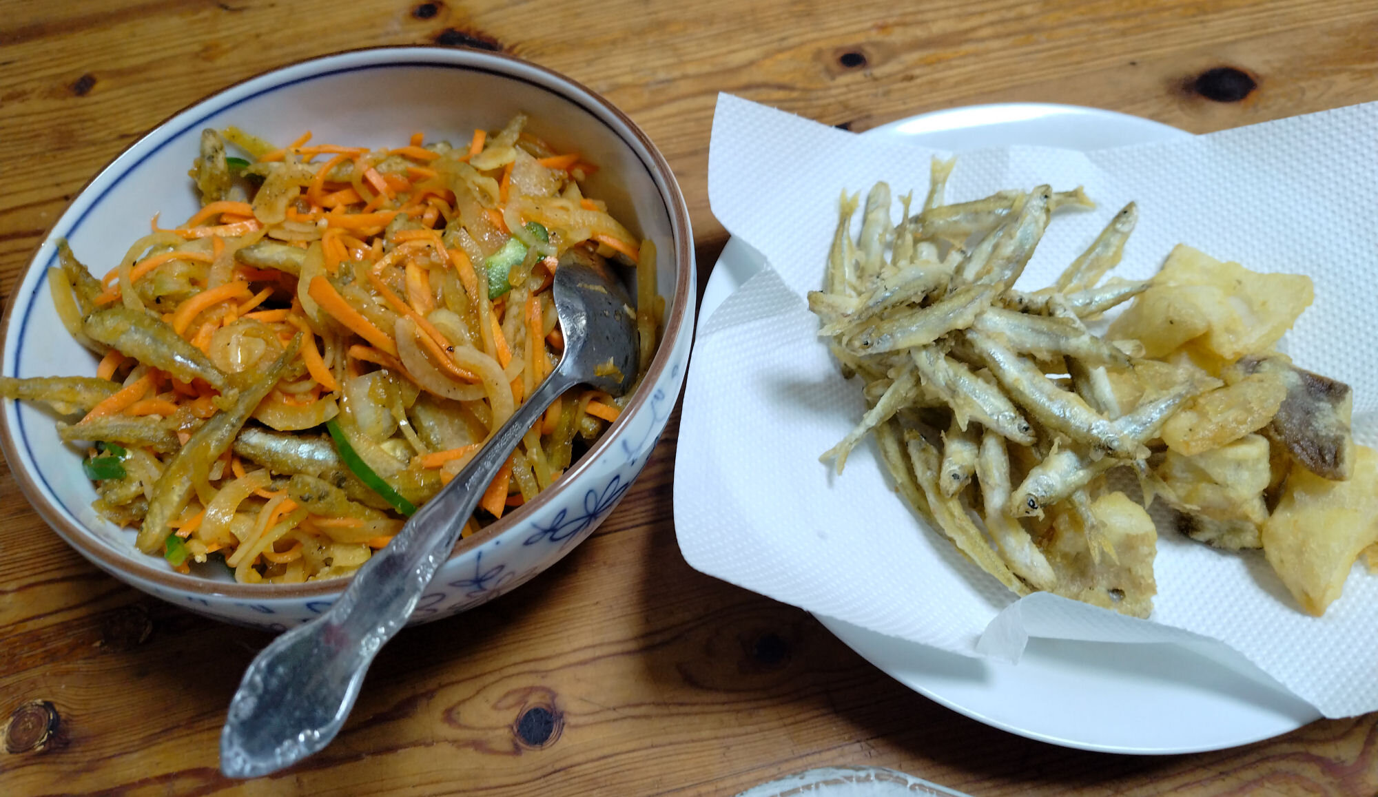 今回も天ぷらと南蛮漬け。1時間くらいで用意できるしうまいしもうこれが定番でいいや。