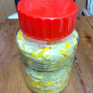 柚子茶2026 今年も柚子をいただいた。 柚子胡椒はまだだいぶ在庫があるので柚子茶にさせていただく。1.2kgで氷砂糖1kg。 へた取って四つ割り、種取りながら4~5mmスライス。氷砂糖と交互に詰めて常温保存。結構、瓶ぎりぎりだった。 前 コメント コメントする コメントの投稿 コメントの返信 コメント (スタイル用のHTMLタグを使えます) 名前 電子メール URL サインイン情報を記憶