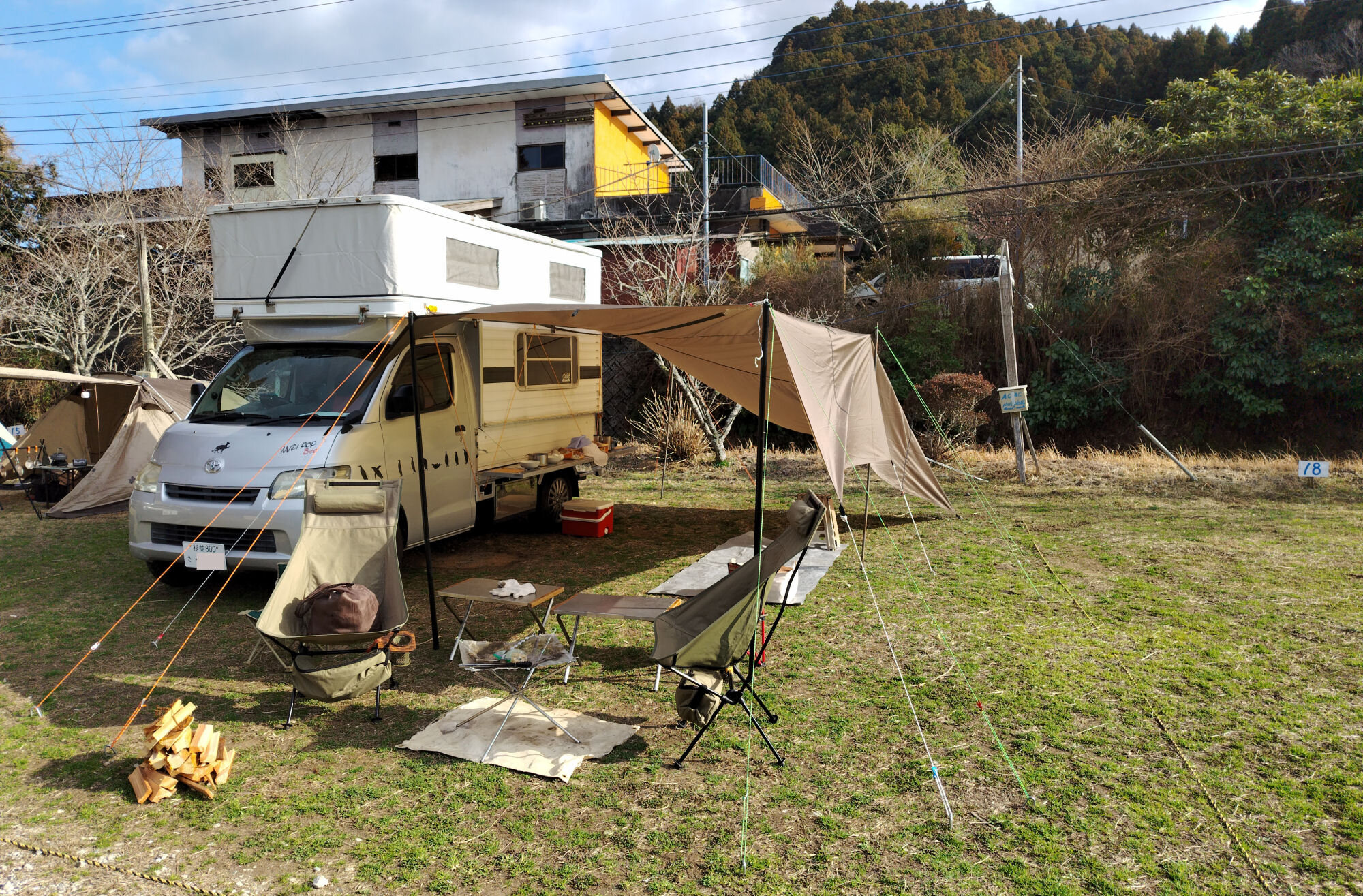 快晴、無風、温暖。ということでコンディション最高。昼からキャンプインだったのでゆっくり準備できた。準備終わって風呂入って本絞り。よい。