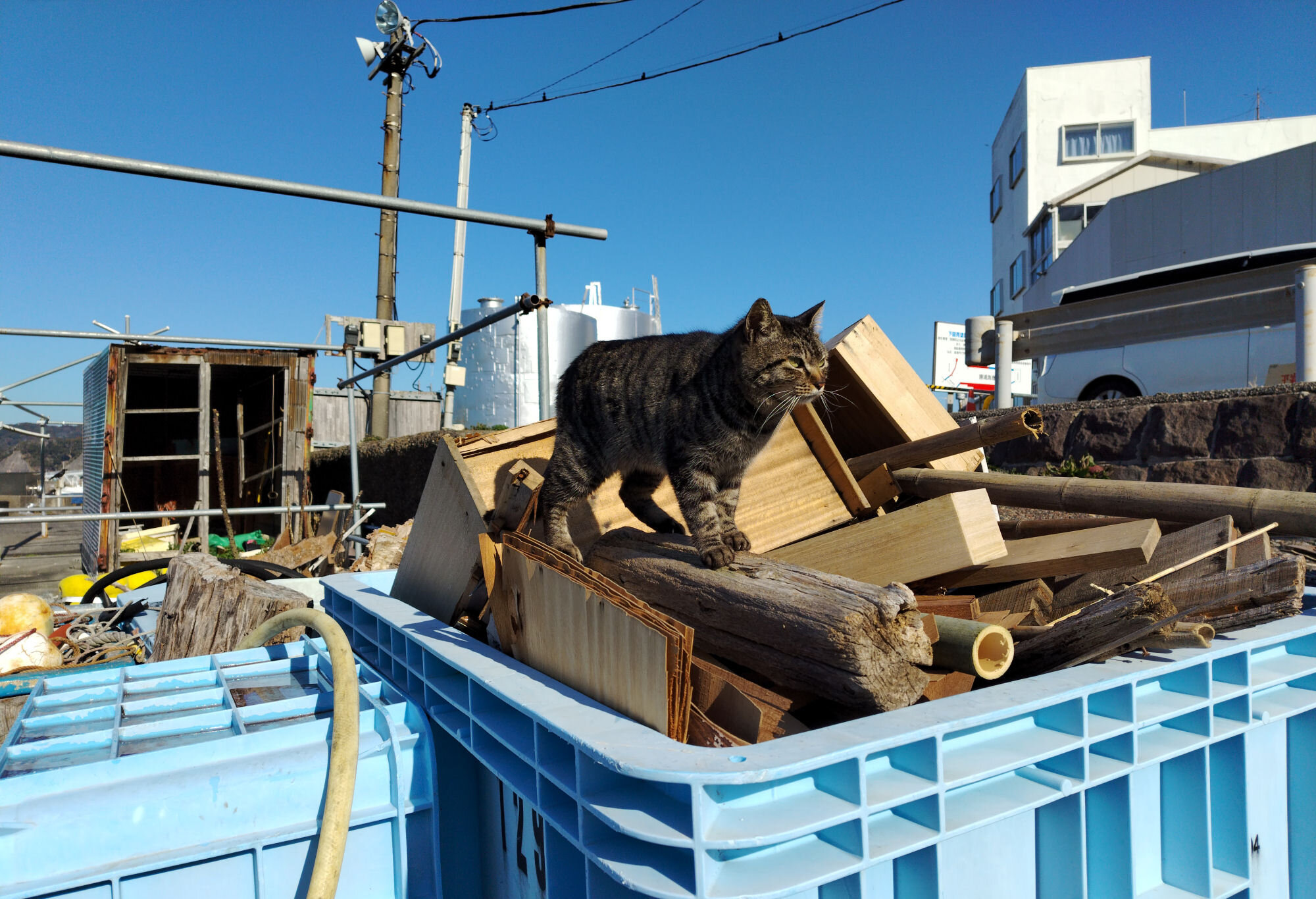 勝浦港は猫祭りだった。堤防の猫はちょっと触らせてくれたし、民家に塊で5匹くらい居たし、他にも道で3匹くらい会った。